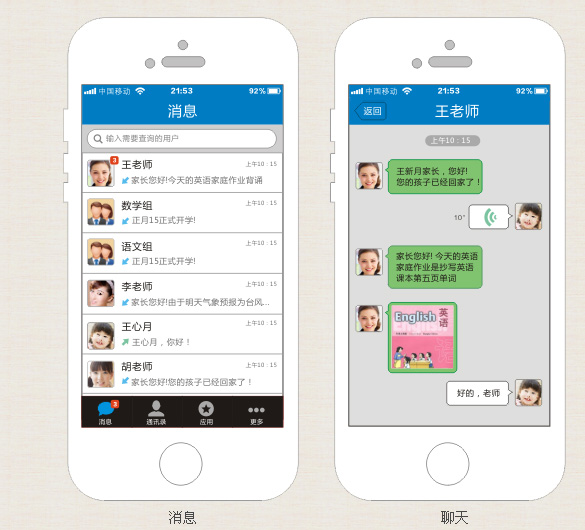 (1)提供家校及教育专家团队之间便捷的教学消息反馈渠道。